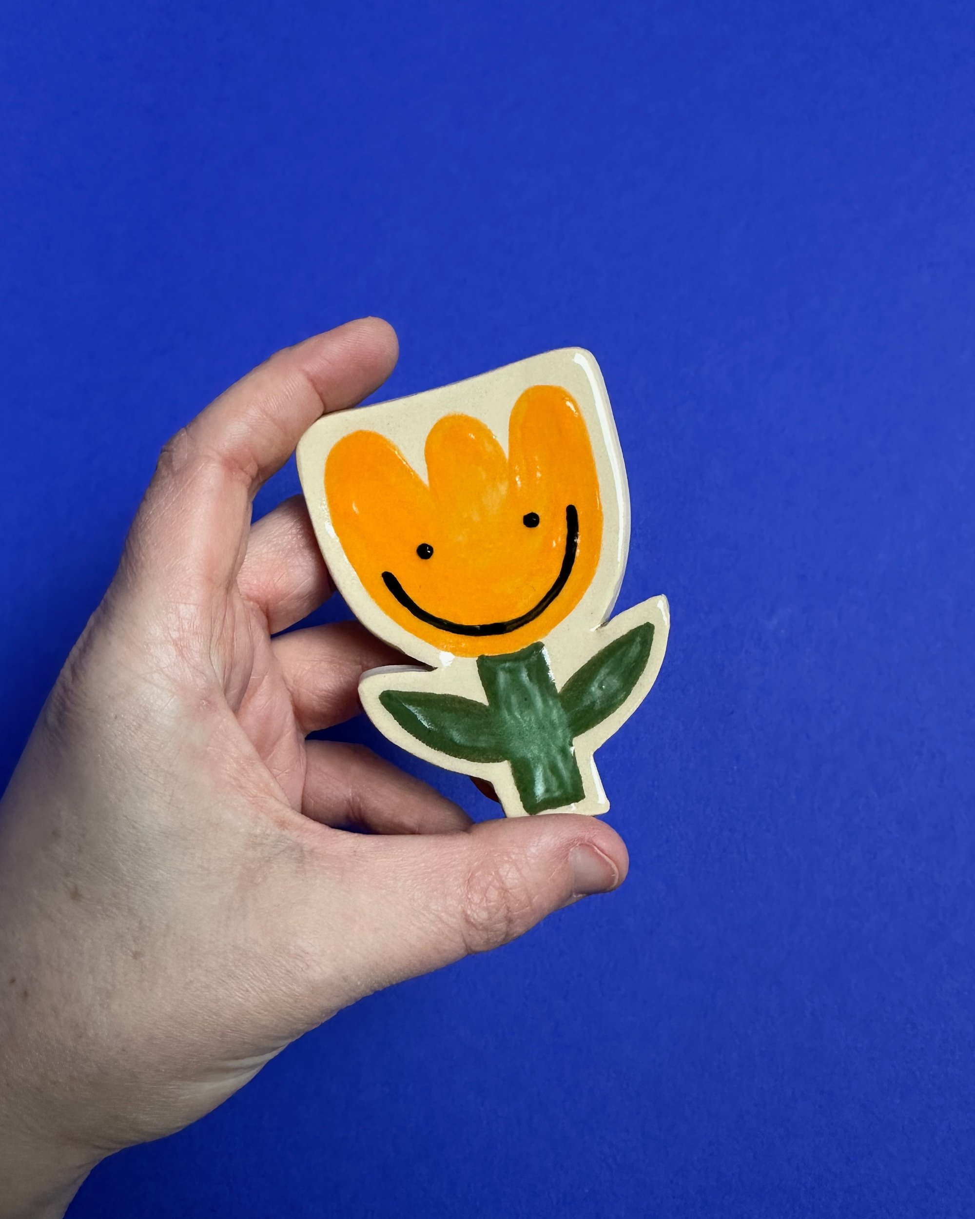 Handmade and hand-painted ceramic magnets with a glossy overglaze.